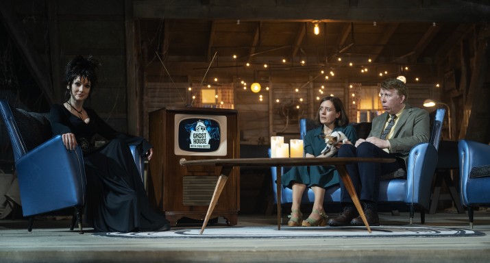 Когда мы впервые встречаем взрослую Лидию, она ведет собственное ток-шоу о паранормальных явлениях под названием «Дом с призраками». И хотя это было бы хорошим и красноречиво исчерпывающим названием ко всей истории с Битлджусом, оно также является и отсылкой к закулисным решениям — фильм мог бы носить подобный тайтл, если бы в 1988 году Warner Bros. добились бы своего. «Им не нравилось название "Битлджус", — делится сценарист второй части Альфред Гоф. — Тиму действительно пришлось побороться за него».