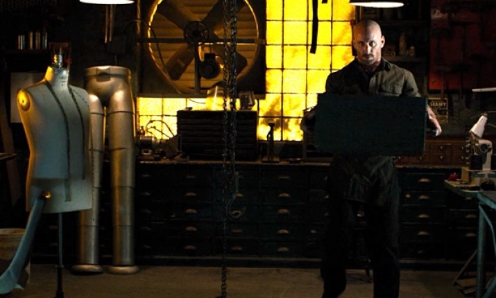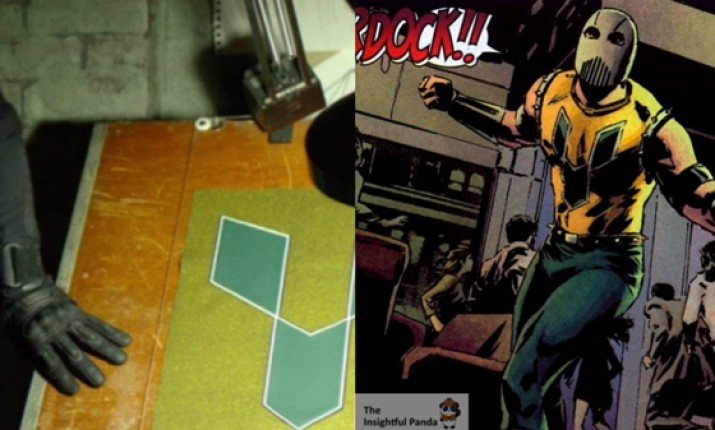 В мастерской Мелвина можно увидеть чертежи перчаток Гладиатора, а также металлические ноги, которые могут принадлежать злодею Стилтмэну.