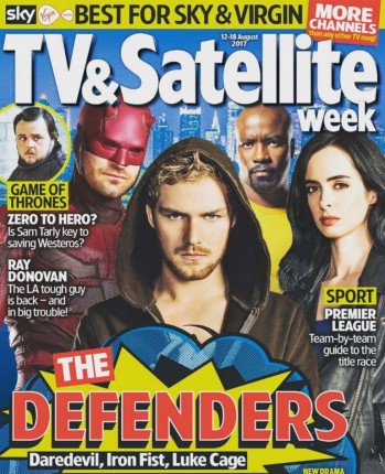До премьеры сериала «Защитники» осталось всего несколько дней, а потому онлайн-сервис Netflix и студия Marvel решили запустить рекламную кампанию грандиозного кроссовера своей супергеройской телевселенной на полную мощность. В галерею LostFilm.TV попали стильный постер телекомикса и обложка британского журнала TV & Satellite Week, на которых сериаломанов встречает великолепная четвертка стражей Нью-Йорка.