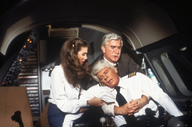 И вот мы подходим к самому «Аэроплану!». Его сюжетная канва практически дословно повторяет «Час Зеро!». Пытаясь вернуть бросившую его женщину, бывший военный летчик Тед Страйкер (Роберт Хейз), страдающий посттравматическим стрессовым расстройством, поднимается на борт пассажирского лайнера, где во время полета выясняется, что из-за отравления пилоты не в состоянии управлять самолетом. Единственной надеждой пассажиров на спасение становится Тед. Но на этом сходство заканчивается и начинается чистейший, концентрированный абсурд.